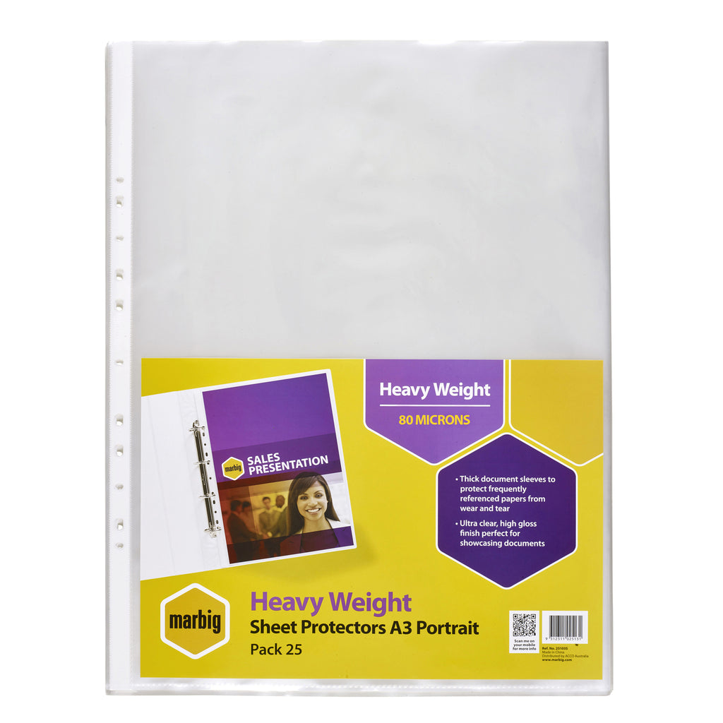 25 x Marbig Heavy Weight A3 Portrait Ring Binder Sleeve Protectors - Clear