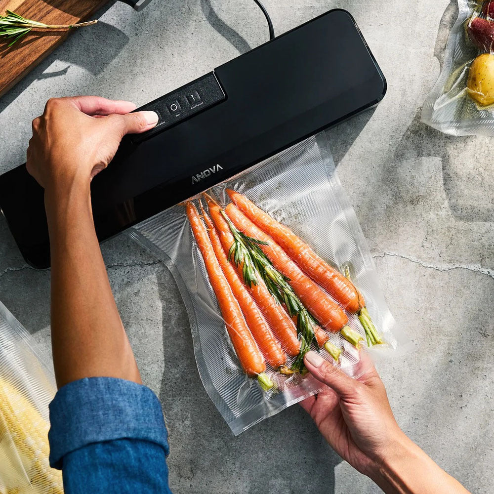 Our new and improved Anova Precision Vacuum Sealer Bags and Rolls are 100% plastic neutral. Every time you purchase a box of Anova Precision Vacuum Sealer Bags and Rolls, the equivalent plastic of 32 plastic bottles will be prevented from entering the ocean through our partnership with Plastic Bank®. The bags and rolls produce the same durable plastic, reliable vacuum seal you’re used to, but without increasing the proliferation of plastic waste.
