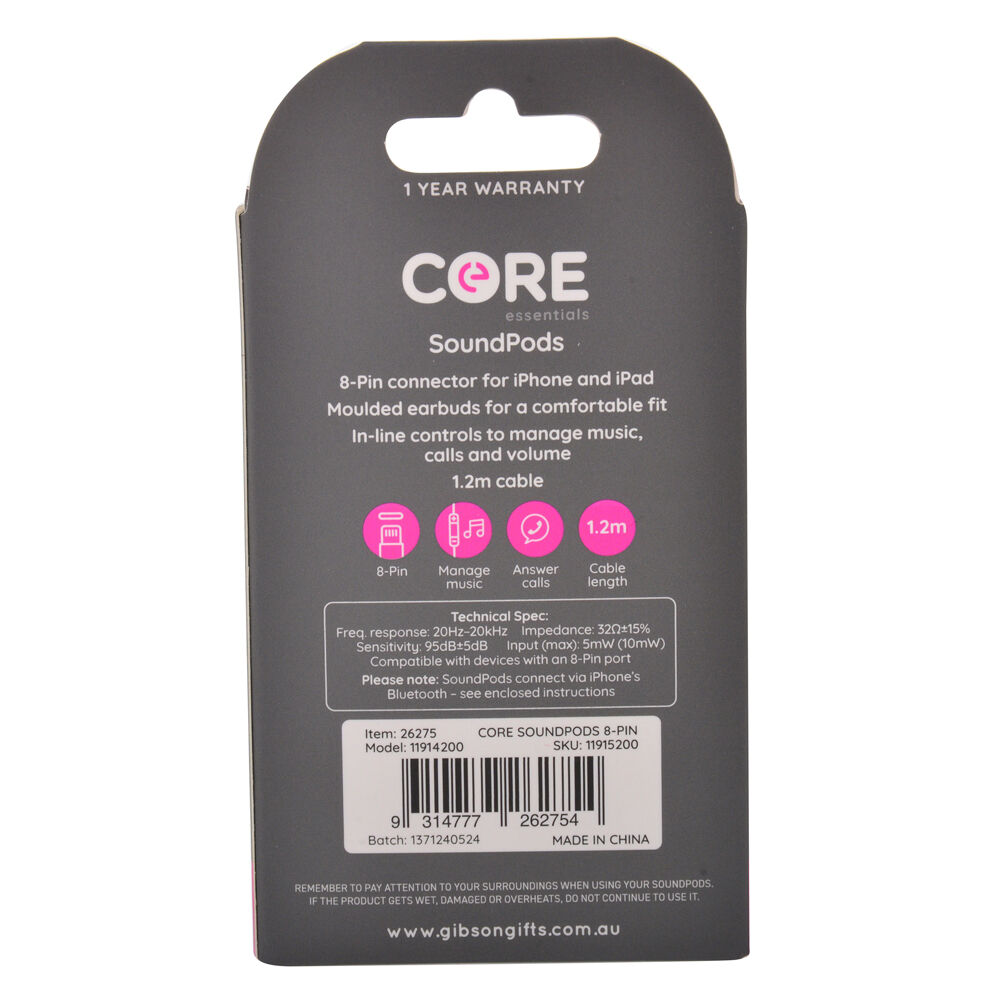 Core Essentials 8-Pin SoundPods/Earphones In-Ear Wired w/ Mic - White