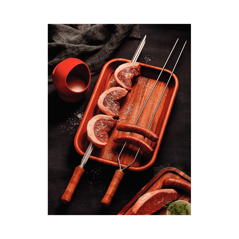 With the 65 cm Tramontina barbecue skewer with stainless-steel blade and wood handles, you have all the beauty and strength guaranteed by Tramontina products. Perfect for ease of cooking of sausages, cut meats, vegetables and many other food ideas one turn and they are all cooked uniformly. Rust proof