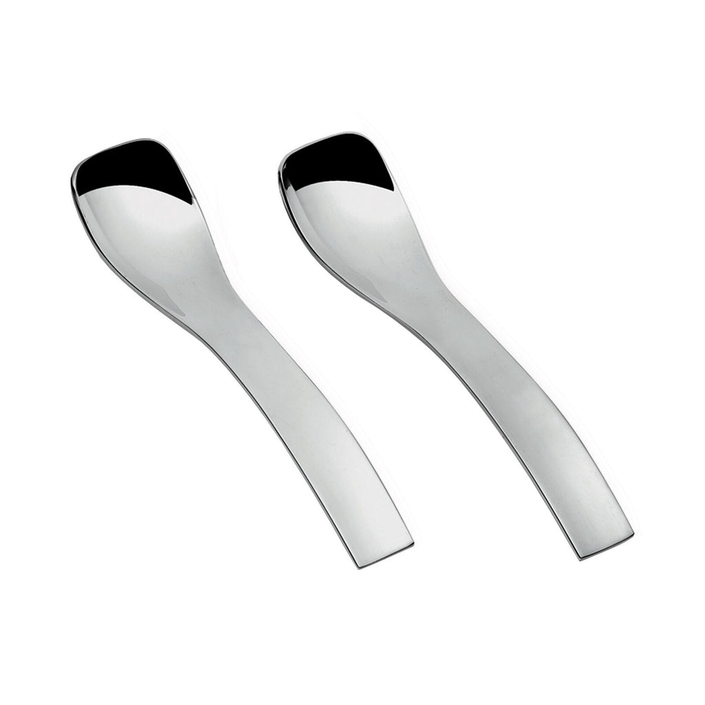 Set of six stainless steel teaspoons that are simply perfect for ice cream and fruit salads. The thickness of the steel used makes for hardwearing cutlery. Design by Ross Lovegrove. Dishwasher safe.