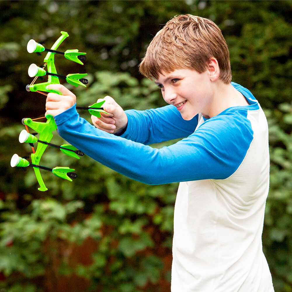 Whether you’re practicing your aim or diving into a full-on archery showdown, this bow is built for action. The compact, lightweight build makes it ideal for indoor play and smaller spaces. Durable bungee cords deliver solid power, and quick reloads keep the game going.