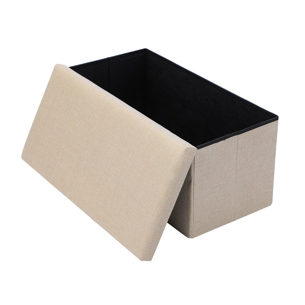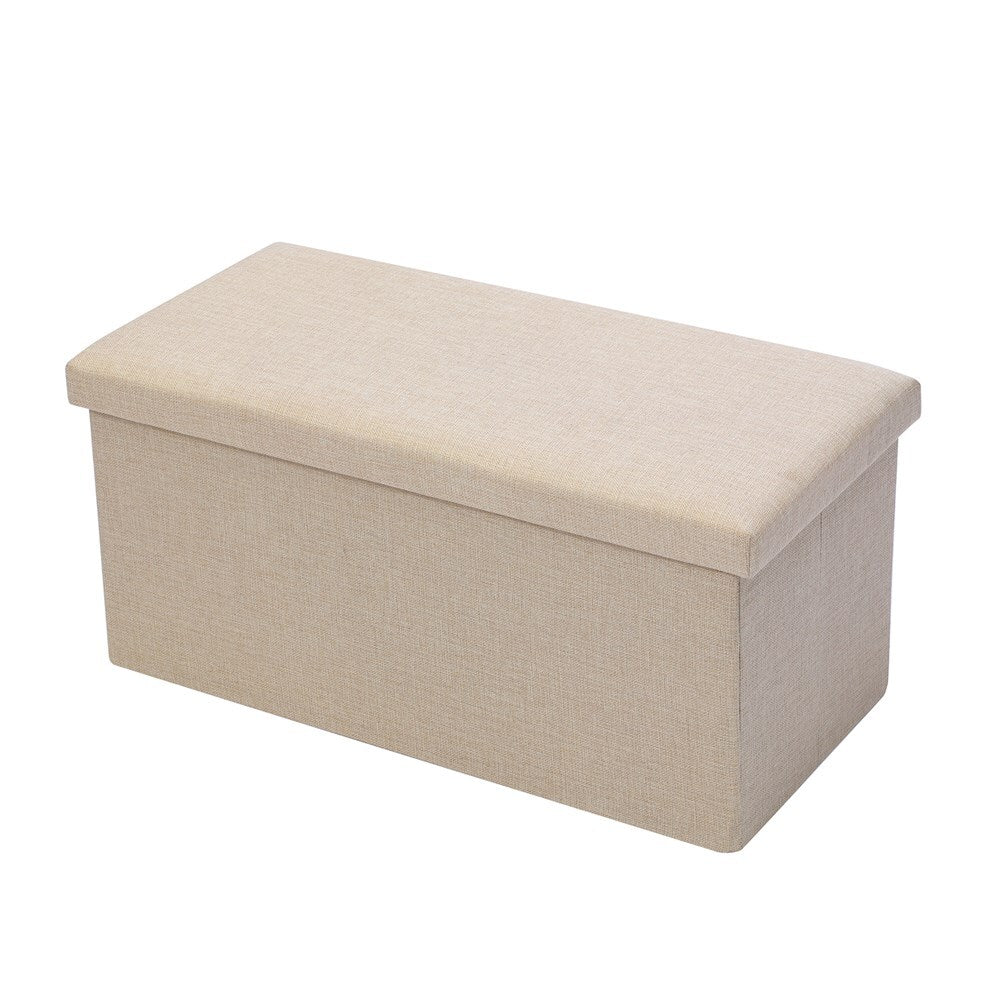 Boxsweden 76x36cm Ottoman Storage Cube Faux Linen - Cream