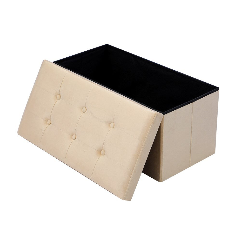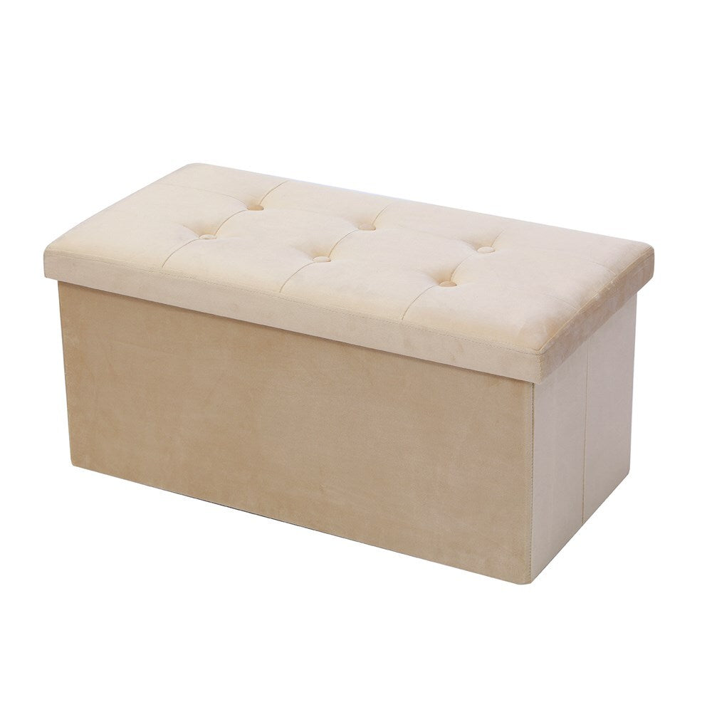 Boxsweden 76x36cm Ottoman Storage Cube Faux Velvet - Cream