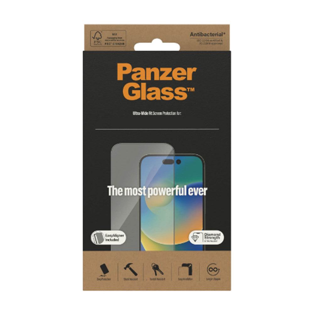 PanzerGlass UltraWide Fit Antibacterial w/Aligner - iPhone 14 Pro