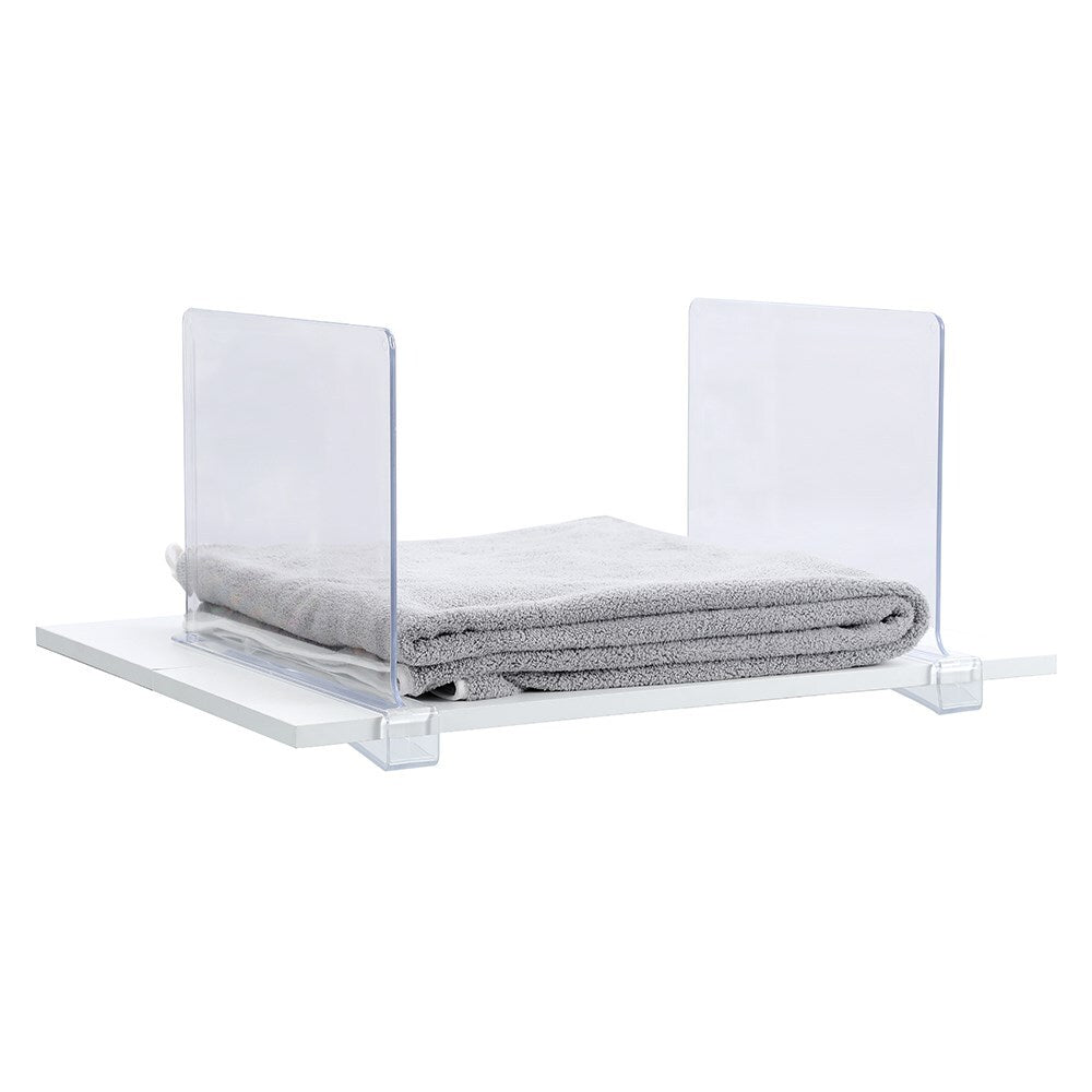 Increase your storage space and effortlessly separate your cluttered items with our Boxsweden Crystal adjustable shelf dividers. A perfect solution for organising your cupboards, pantry, linen cupboard and wardrobe. Made from durable material and BPA free.