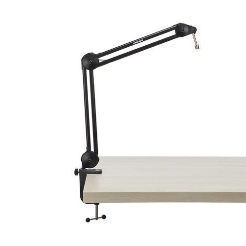 The mic book arm easily attaches to a table or desk via its C-clamp mount, which offers a maximum grip of 2”. In combination with its iron and plastic construction