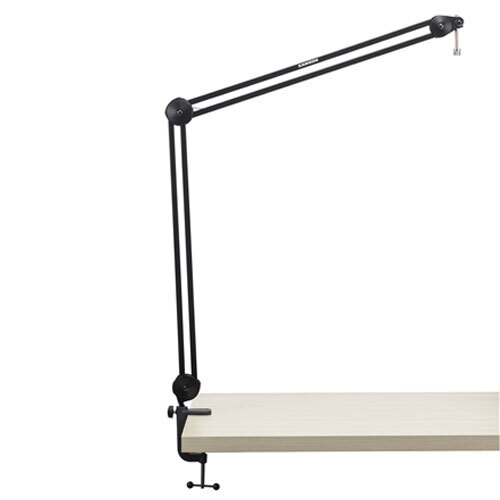The mic book arm easily attaches to a table or desk via its C-clamp mount, which offers a maximum grip of 2”. In combination with its iron and plastic construction