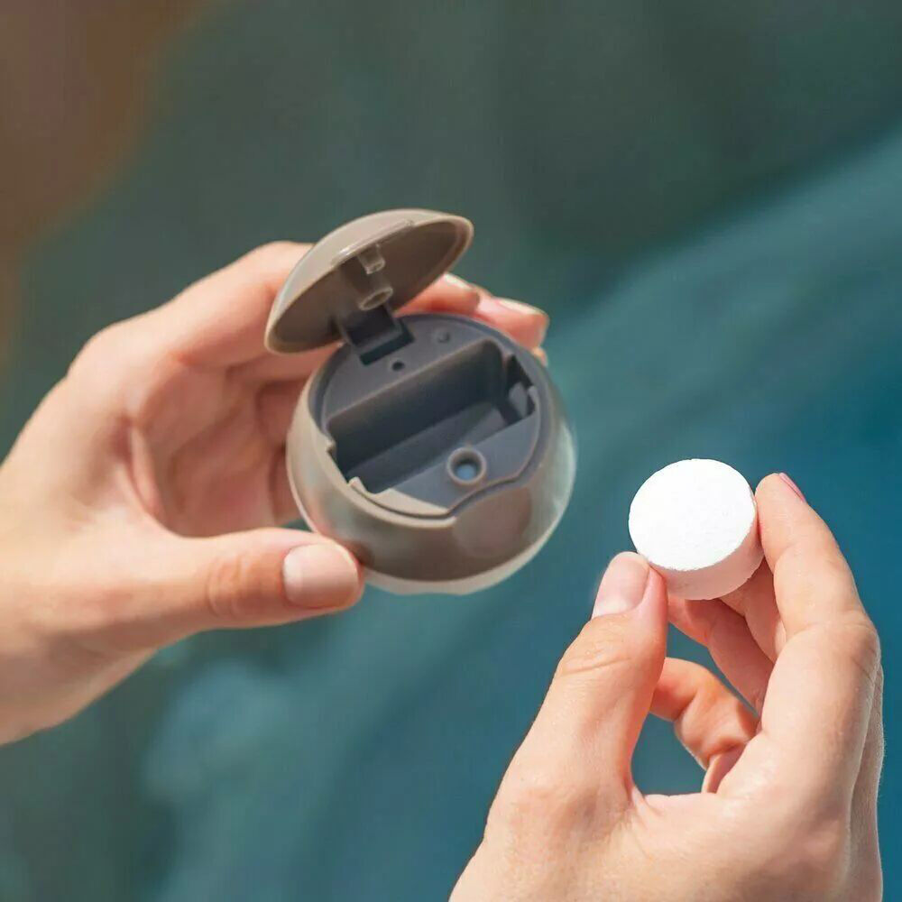 The Intex chlorine dispenser ensures regulated release and distribution of chlorine in the PureSpa. Simply place a chlorine tablet (3,8 cm) in the dispenser and immerse it in the water.
