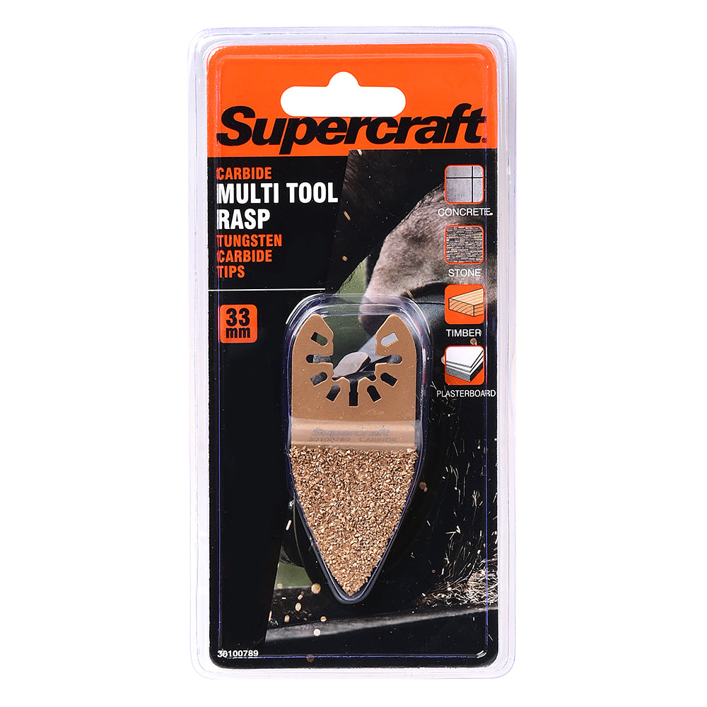 The Supercraft 33mm Carbide Rasp Multi Tool Blade features a universal style fitment that is compatible with most brands