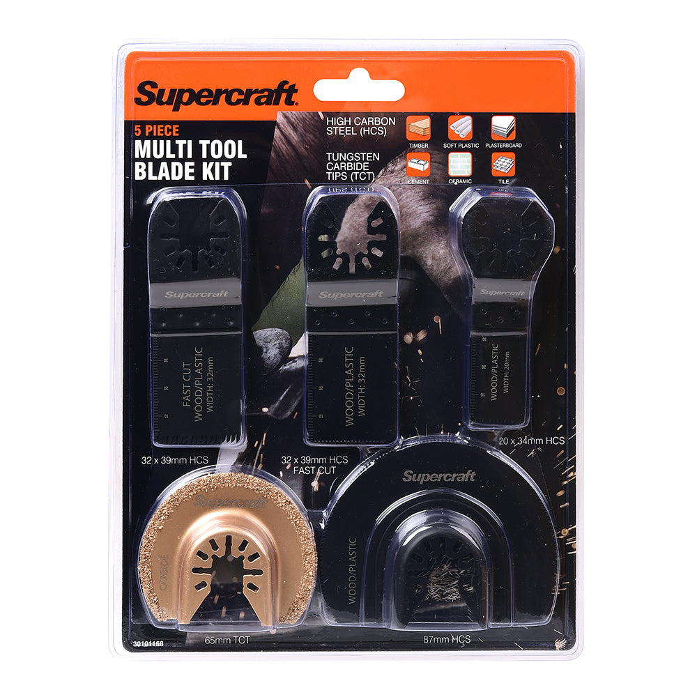 The Supercraft 5 Piece Multi Tool Blade features a universal style fitment that is compatible with most brands