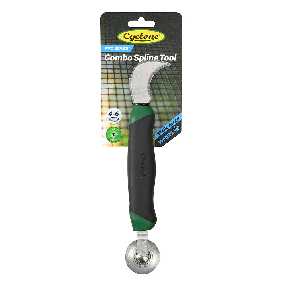 The Cyclone steel combination spline roller is designed for speed and efficiency. With one tool you can roll synthetic screen into the spline channel and ifinish by cutting the excess screen with the knife end.