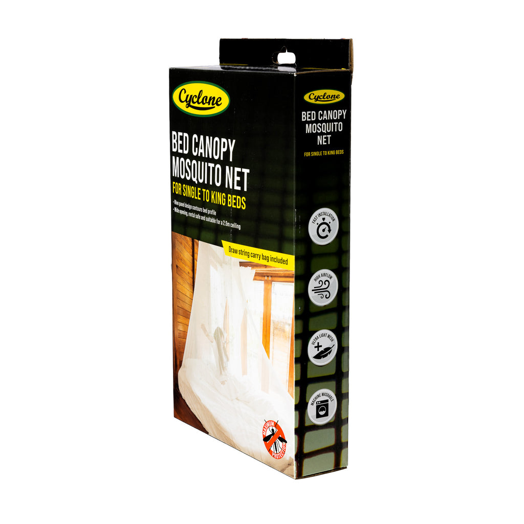 The Cyclone Bed Canopy Mosquito Net is the perfect solution to sleep mozzie-free. Cyclone's mosquito net is made for ultimate protection, the hexagon mesh is designed for maximum breathability impenetrable by pesky mosquitoes, insects and other bugs.