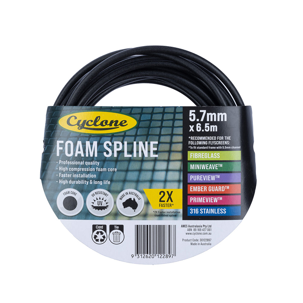 Cyclone Pro Foam Spline 5.7mm x 6.5m For Fly Fly Screen Frame