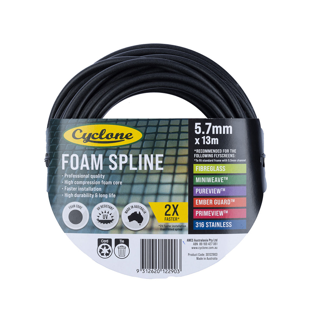 Cyclone Pro Foam Spline 5.7mm x 13m For Fly Fly Screen Frame