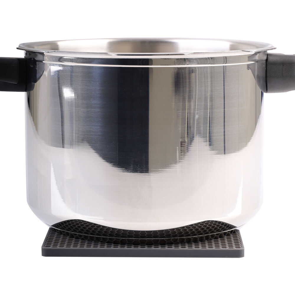 The Appetito Silicone Square Trivet is a versatile kitchen accessory measuring 17.3 x 17.3cm, designed in an elegant charcoal color. Made from high-quality silicone, this trivet provides excellent heat resistance, protecting your countertops and dining surfaces from hot pots and pans. Its non-slip surface ensures stability while in use, making it ideal for both indoor and outdoor dining. This stylish and functional trivet not only enhances your kitchen decor but also adds convenience for safe handling of hot dishes. Easy to clean and maintain, the Appetito Silicone Square Trivet is a practical addition to any home chef's essentials.