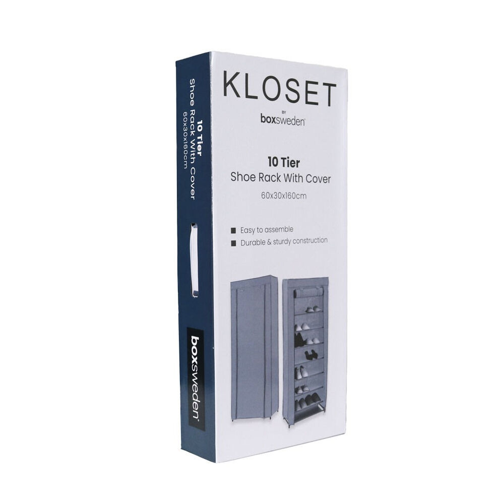 Boxsweden Kloset 10 Tier Shoe Rack w/ Cover 60x30x160cm Assorted