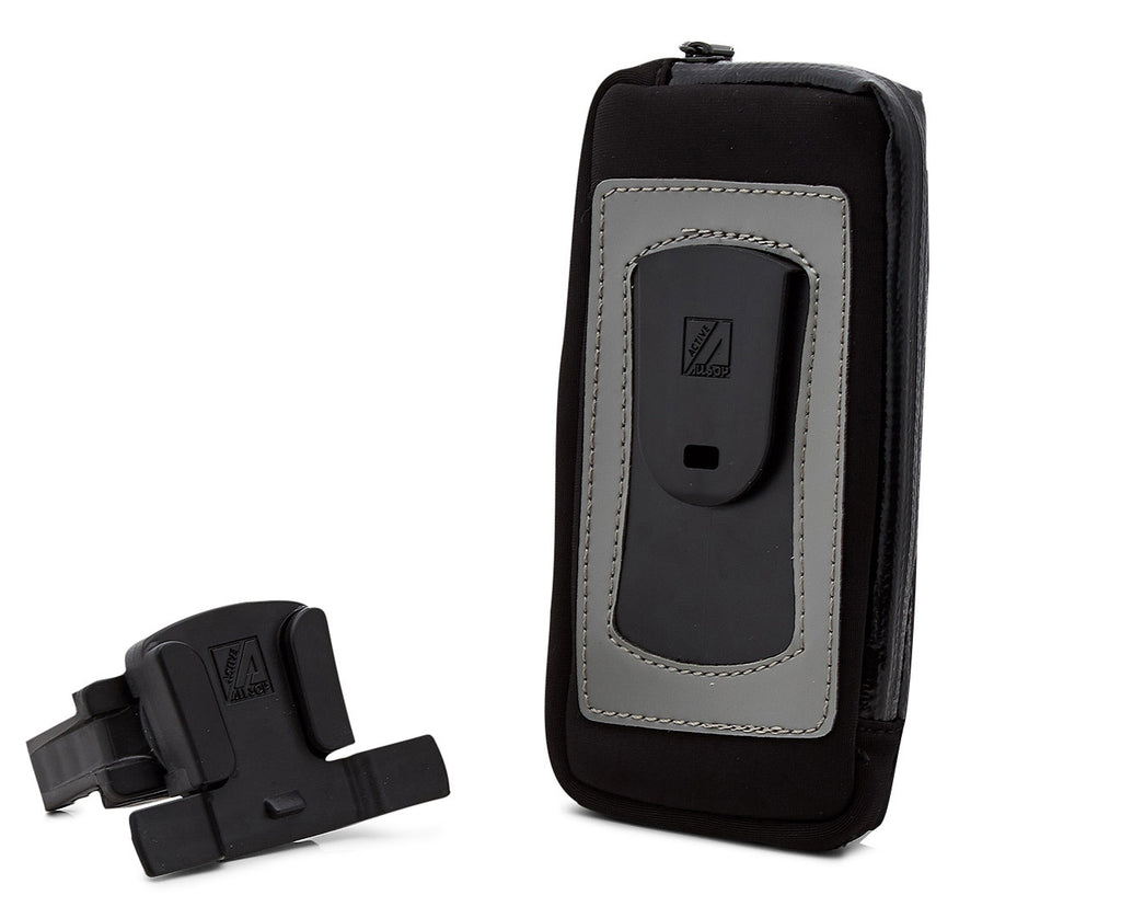 Accommodating smartphones up to 5.7" in height and attaching securely to a base clip, the weather resistant pouch protects your phone from the elements and incidental moisture and sweat. Because staying active and staying connected doesn't have to be mutually exclusive.