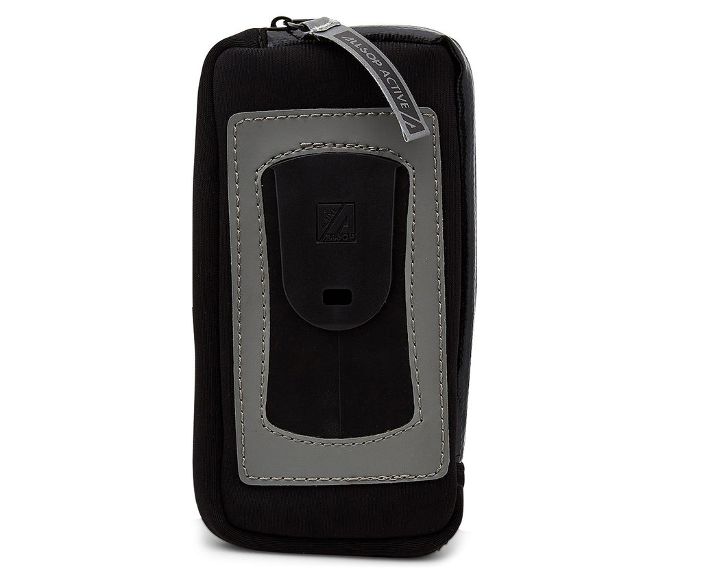 hone case fits phones up to 14.5cm high Case attaches securely to the base clip using the ClickGoTM easy attachment system Weather resistant and sweat proof pouch protects your phone from the elements and incidental moisture and sweat Pouch is interchangeable with other pieces in the Allsop easy attachment system including the Sport Armband and Sport Belt (sold separately)