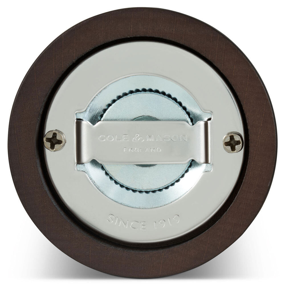 - Adjust the grind using the intricate engine-turned crown engraved with Cole & Mason brand.