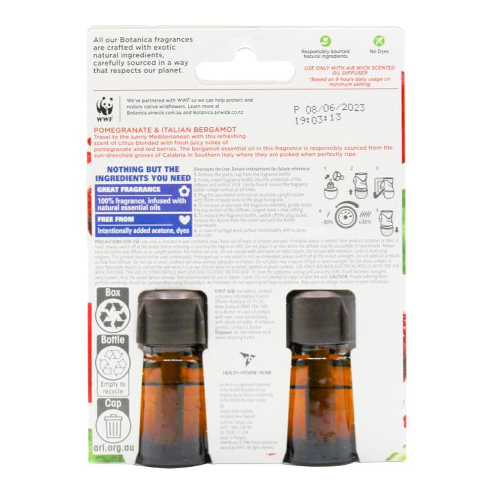 Airwick Pk2 X 19ml Botanica Fragrance Refills Pomegranate Italian Bergamot