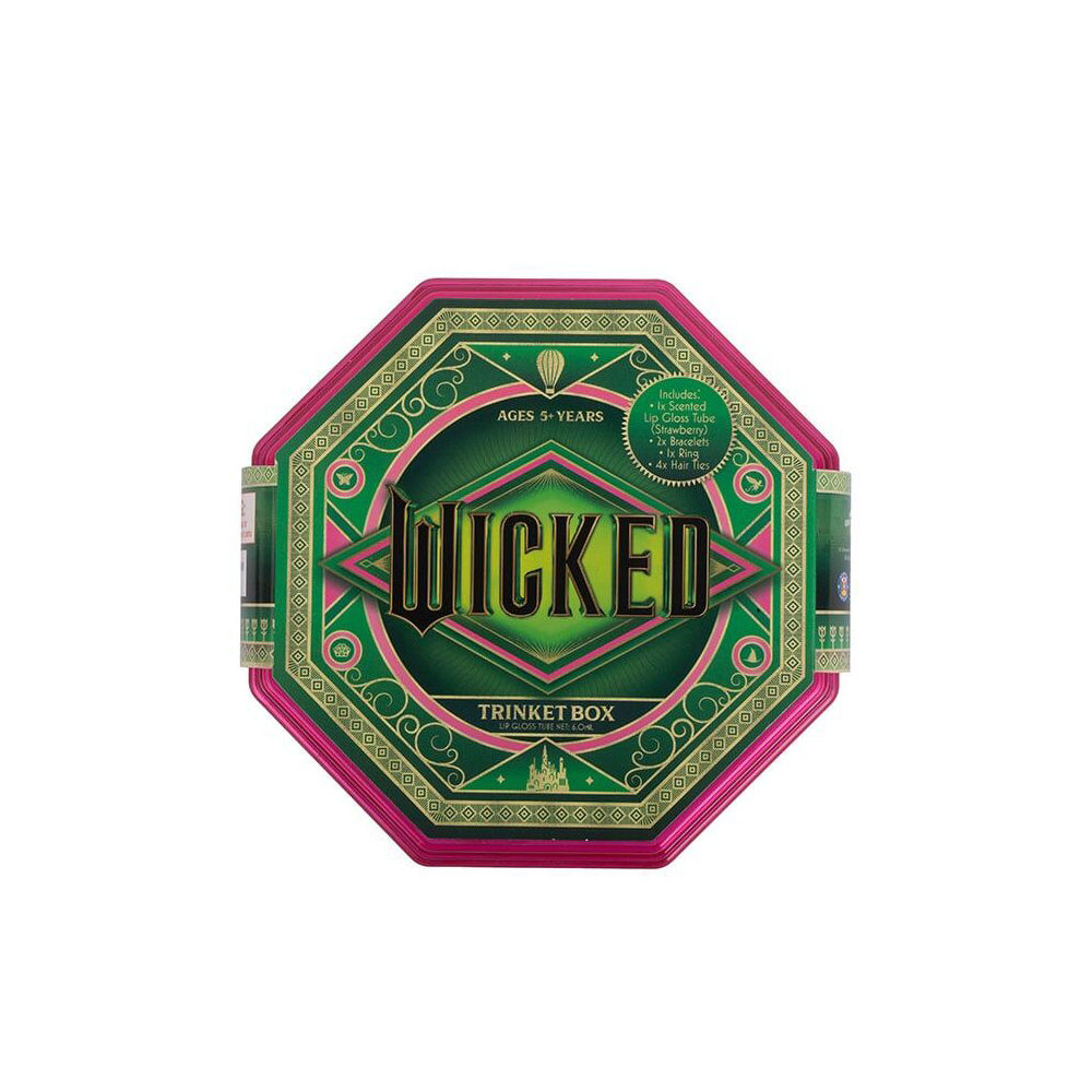 Transform your everyday look with our Wicked Make up Hexagon Trinket box. 2 great Wicked designs to choose from. Green Trinket Box- Eyeshadow palette (Green, Pink and Gold) with eyeshadow applicator. Cute charm bracelet, a ring, necklace and scrunchie . Pink Trinket Box- Strawberry Lip gloss, 2 x bracelets, a ring and 4 hair ties. Shine like a star with glossy lips, coloured eyeshadows and jewelry. The trinket box is perfect for on-the-go touch-ups, making it convenient for travel or everyday use. Add a touch of glam to your beauty routine with this cute make up box.!