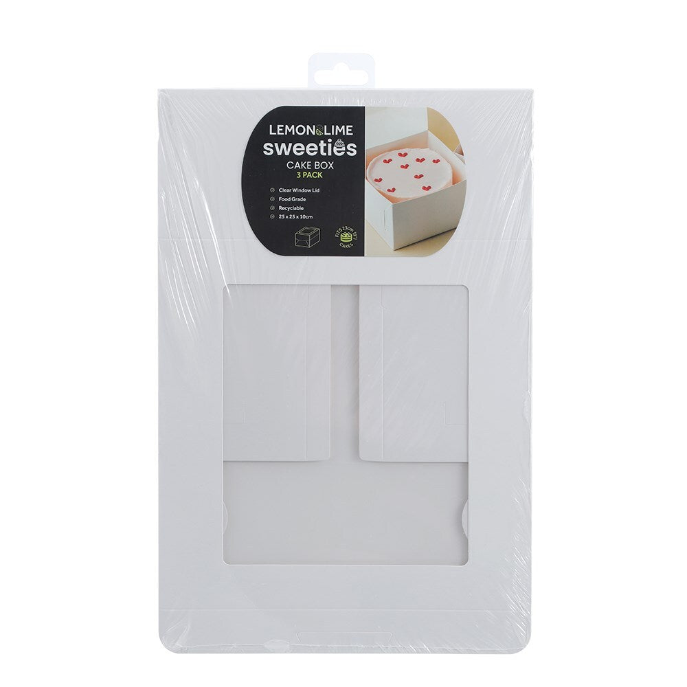 3PK Lemon & Lime Sweeties 25x10cm Cake Box - White