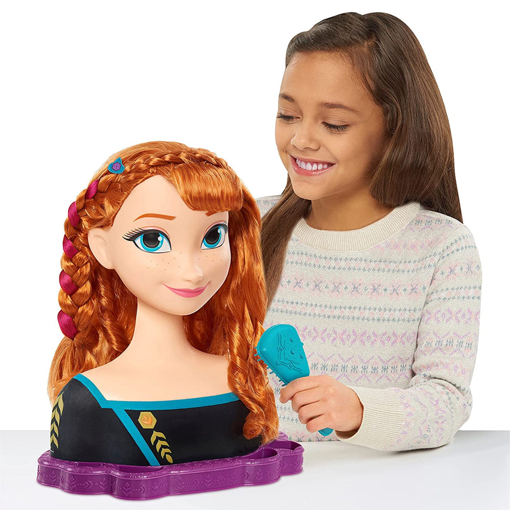 - Disney's Frozen 2 Queen Anna Deluxe Styling Head features her long red hair.