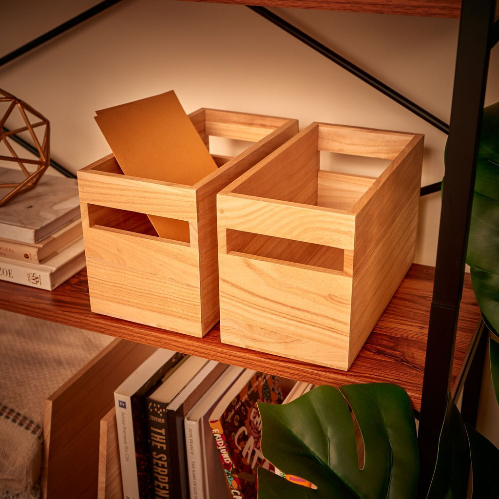 Sustainability meets storage with the iDesign EcoWood Natural Paulownia Wood Storage Bin with Handles. This eco-friendly bin provides storage in the kitchen and pantry for bottles, cans, jars, boxes, snack bags, pouches, packets, and more. This versatile bin is also great for use in the bathroom, bedroom, closet, office, craft room, nursery, or anywhere you need additional organization. The open top design ensures items are always visible and accessible, while the built-in handles allow for portability and quick reorganization. It can also be paired with additional organizers in the EcoWood Collection (sold separately) for modular and customized storage. The sustainably-sourced Paulownia wood construction stands up to every day use, and it is sealed to resist stains, splinters, and warping. The natural finish matches a variety of kitchen and home decor styles. , this multi-purpose bin creates instant organization in compact spaces around the home.