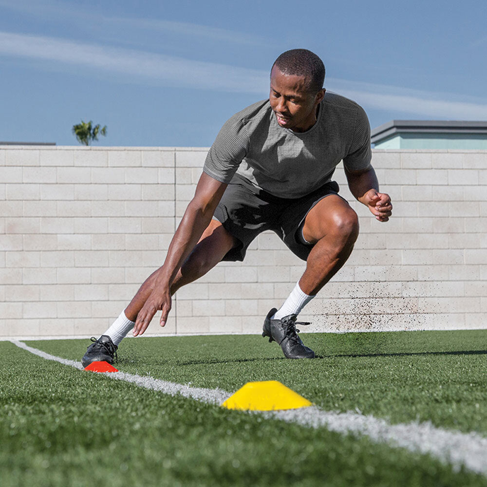 Mini Cones are engineered with a square base for better balance, making them the ideal training aid for a variety of sports and for players of all ages and skill levels. These high-visibility cones can be used for marking training areas, setting up drills and skill exercises, fields, and courts. Constructed for use on a variety of surfaces, the cones can be used on turf, courts, grass, and much more. Designed with durable materials, SKLZ Mini Cones are built to withstand rigorous training sessions, season after season. A carry strap is included for easy transport and storage.