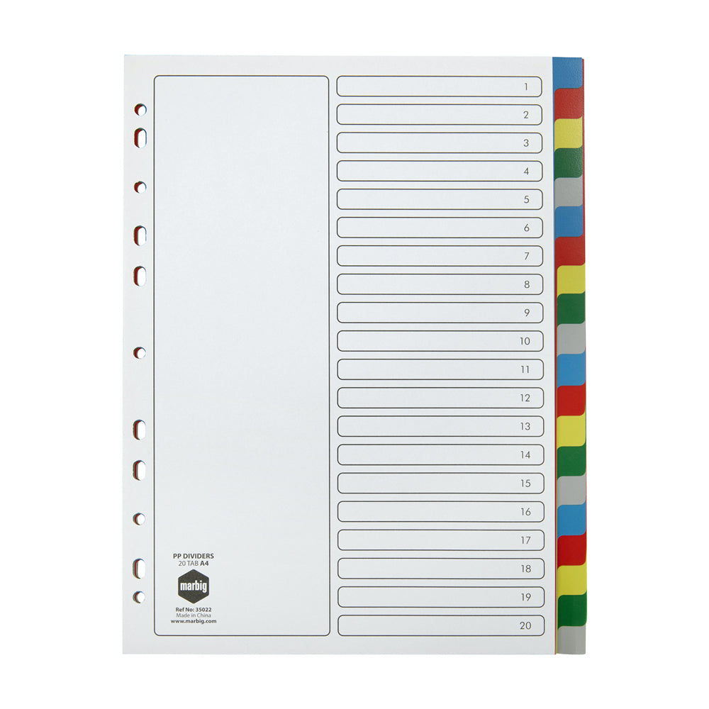 Marbig PP 20 Tab Coloured A4 Binder Divider/Indices