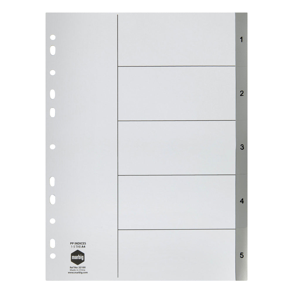 Marbig PP 1-5 Tab A4 Lever Arch/Binder Divider/Indices - Grey