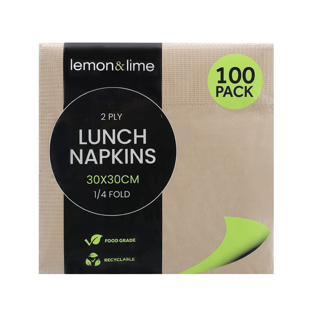 100PK Lemon & Lime 30cm Lunch 2-Ply Napkin - Natural