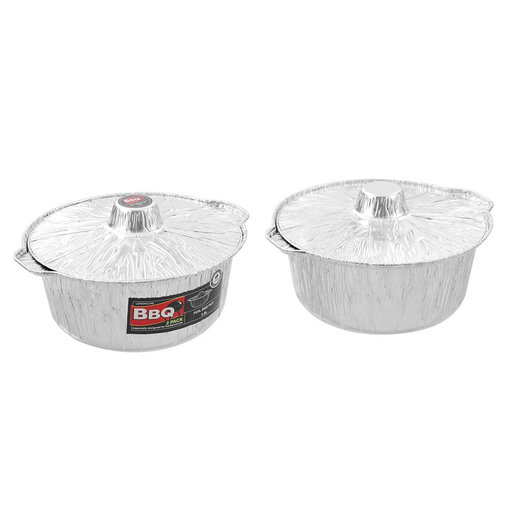1 x 2pc Lemon & Lime 3.8L/29cm Foil BBQ Pot w/ Lid - Silver