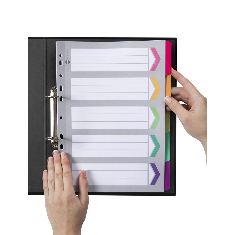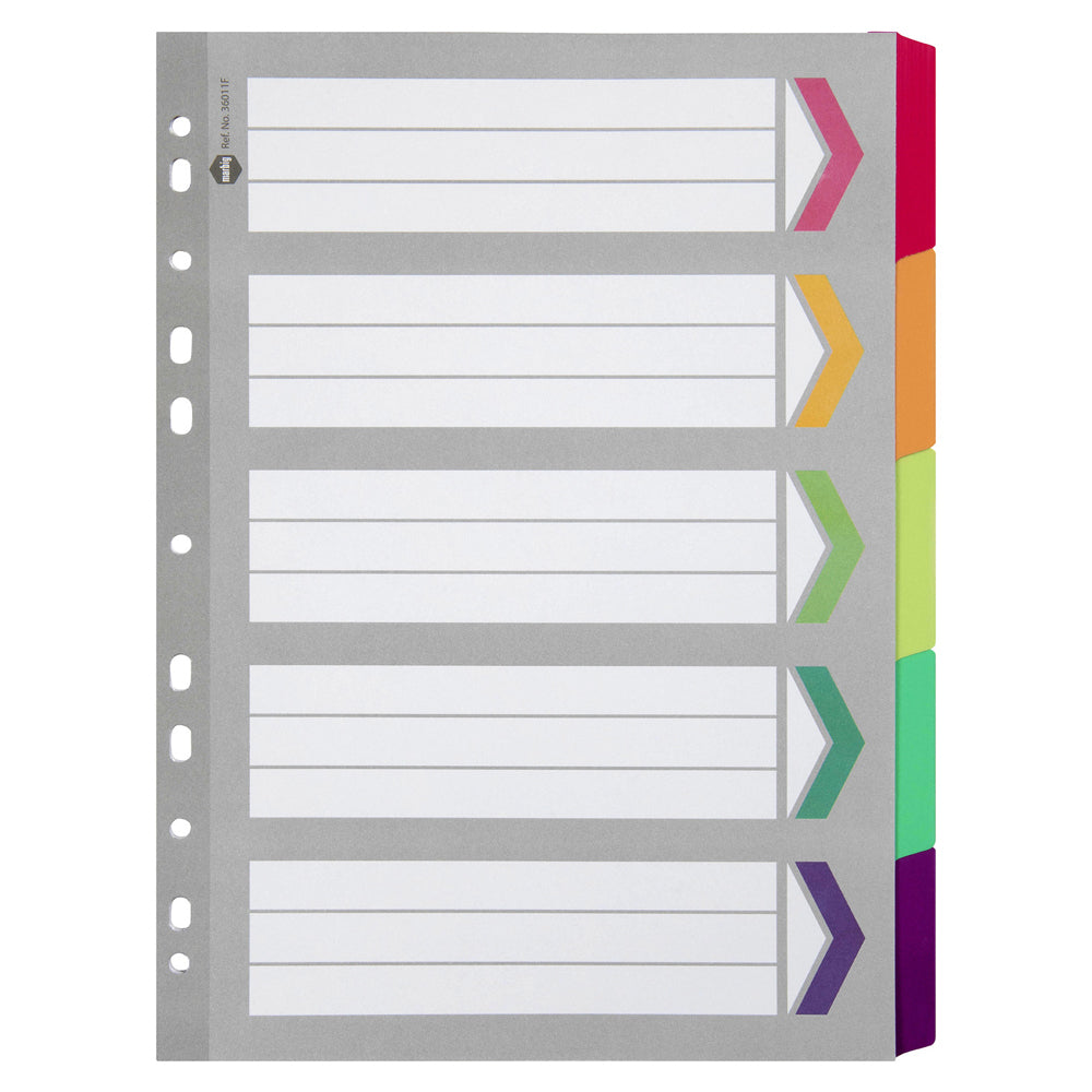 Marbig 5-Tab Fluoro A4 Ring Binder Plastic Divider Organiser