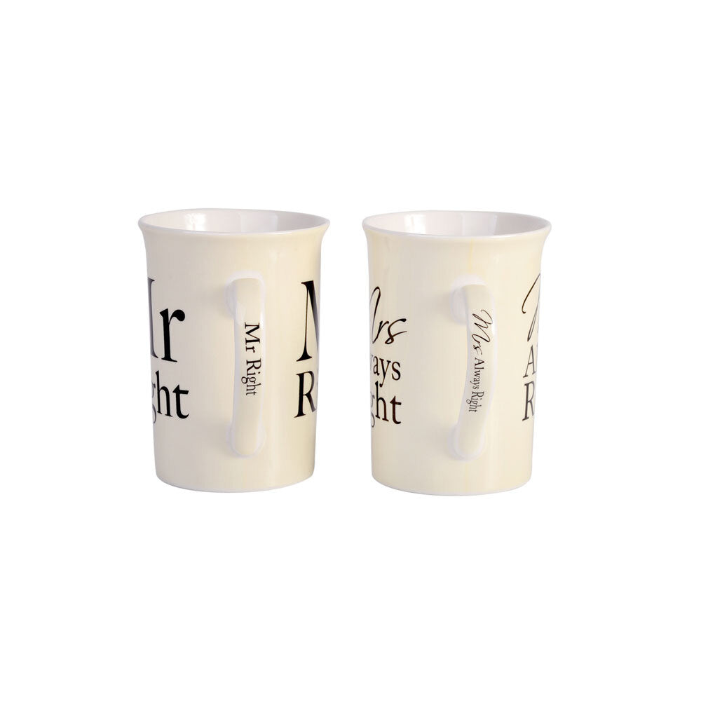Introducing the charming Mr. Right and Mrs. Always Right set of 2 coffee mugs. Crafted in elegant ivory and black, these mugs are perfect for couples who love to share a laugh over their morning coffee. Each mug features a whimsical design that celebrates the unique dynamic of relationships. The set comes beautifully boxed, making it an ideal gift for weddings, anniversaries, or just because. Sip in style and enjoy a daily reminder of your special bon