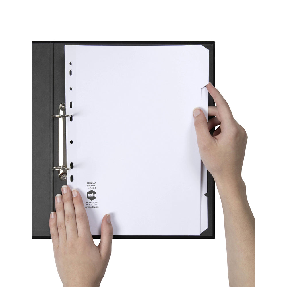 20pc Marbig White 5-Tab Manilla A4 Ring Binder Indices Dividers