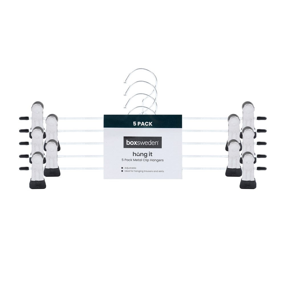 Keep your wardrobe tidy with our Boxsweden Hangit Adjustable Clip Hangers. Conveniently coming in a pack of five, our hangers are ideal for hanging trousers and skirts.