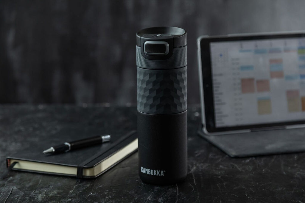 Kambukka Etna Grip 3in1 Snapclean 500ml Travel Mug Black Steel