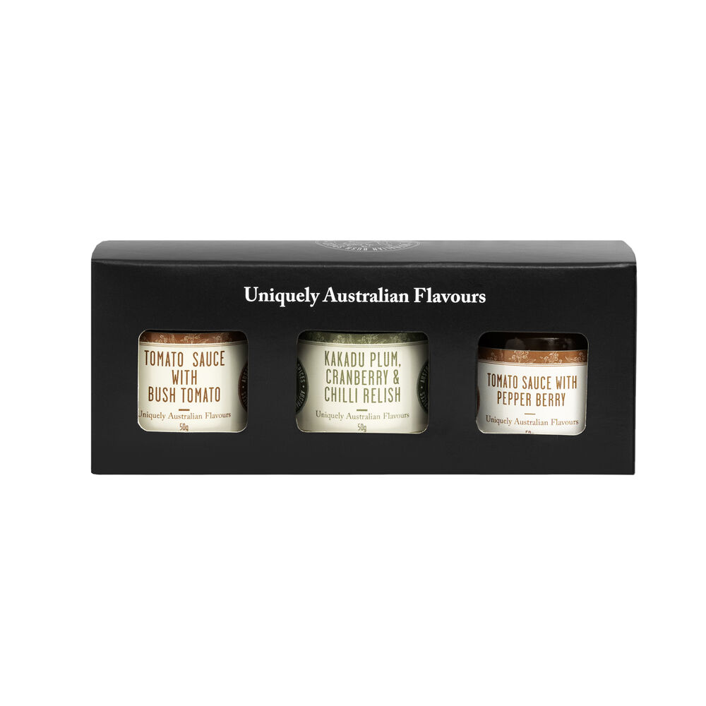 3pc Australian Bush Spices Mini Tomato Sauces and KP Relish 50g