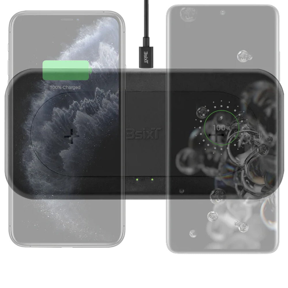 3sixT Dual 15W Qi Wireless Charger For iPhone/Samsung - Black