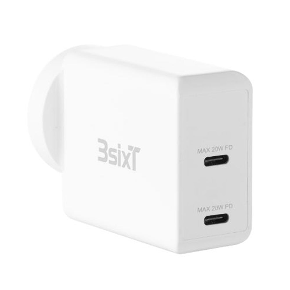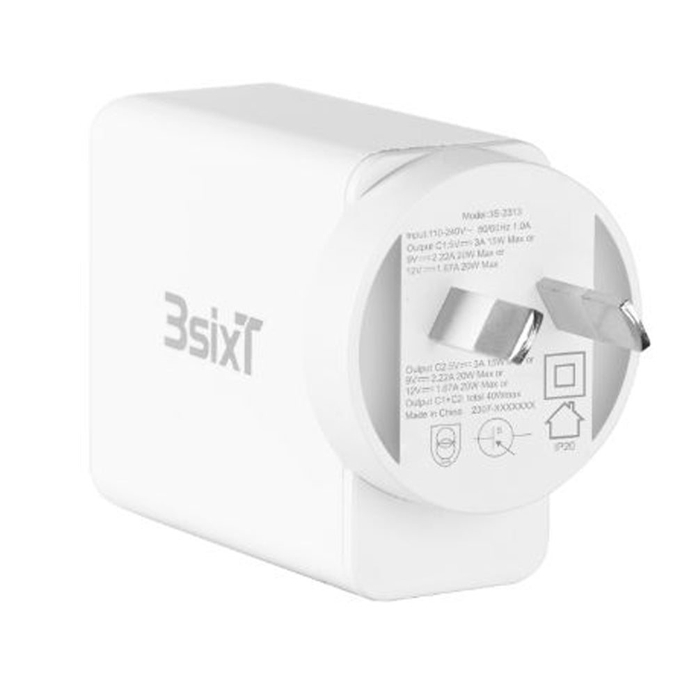 3sixT Dual Port 40W Wall Charger Dual AU/NZ USB-C White