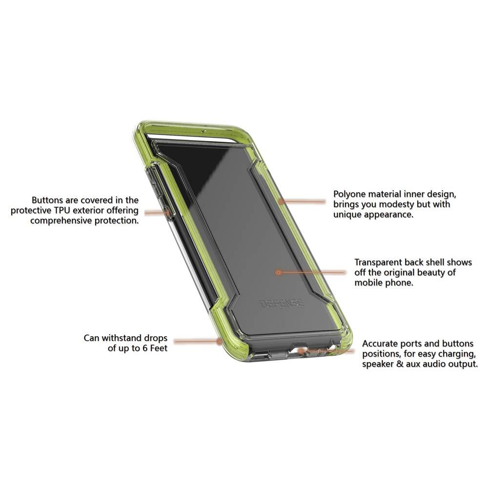The secret to Defense Clear's ultra protective design is two layers of shock absorbing rubber. The first is a clear, rubbery TPU that lines the outer edge of your case, providing grip, button protection and overall drop protection. Inside is a layer of special DropShield shock absorbing polymer, which actively deflects the force of shocks away from your phone. On the back is a clear, hard polycarbonate shield to protect the main body of your phone. These protective cases have a raised front lip to keep your screen off of tables and other flat surfaces.