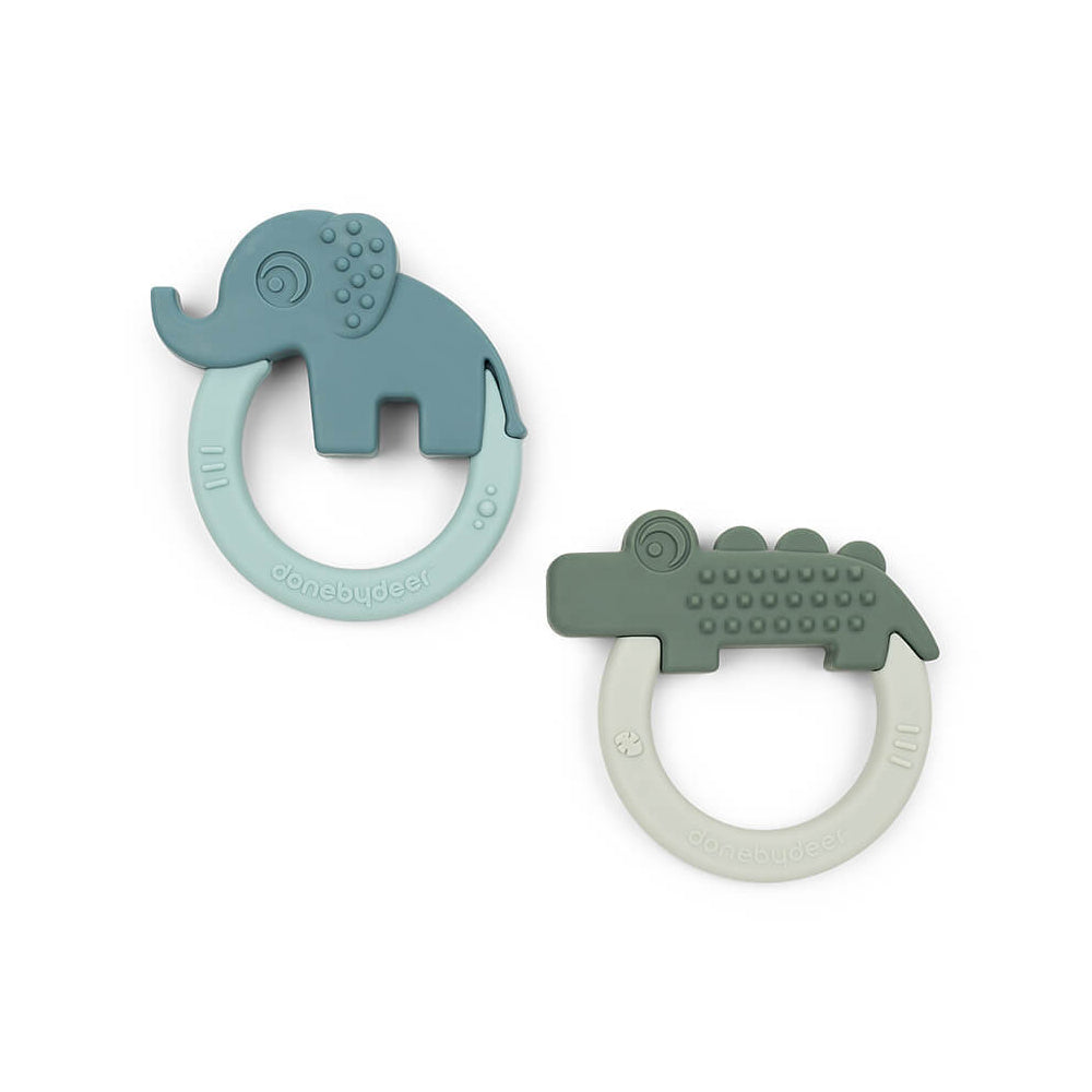 2pc Done By Deer Silicone Baby Teether Deer Friends 0y+ Green/Blue