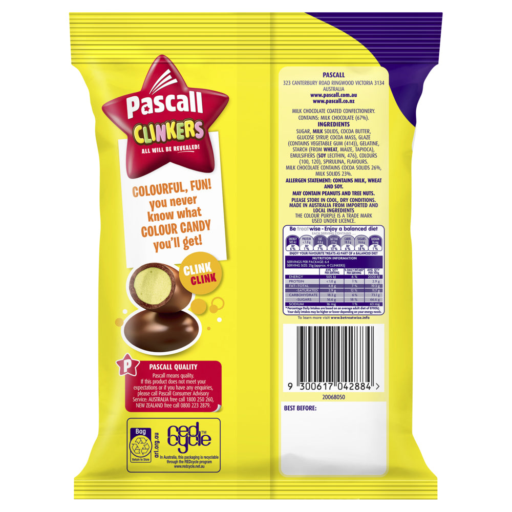 Colourful, fun! You never know which colour candy you'll get! PASCALL Cadbury Clinkers are colourful candy centres dipped in smooth and delicious Cadbury Milk chocolate.