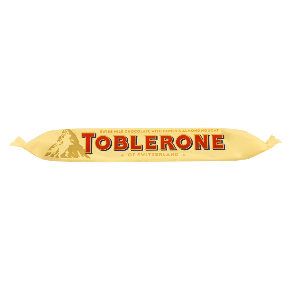 Toblerone 50g Milk Chocolate is Swiss milk chocolate with honey & almond nougat.
