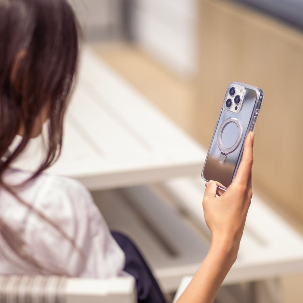 Slim phone case with scratch-resistance, crystal-clear design. Enjoy added grip without the bulk, featuring a low-profile kickstand and MagSafe compatibitliy.