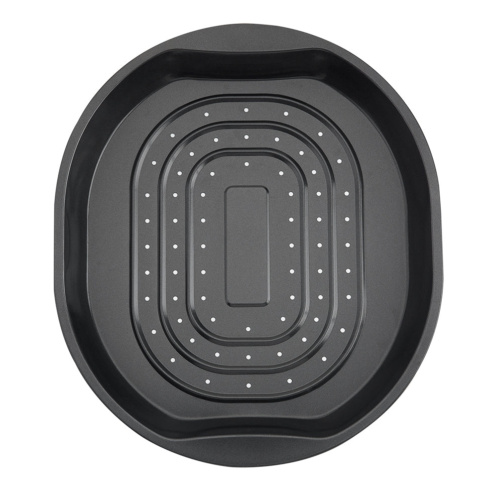 Size: 33.5cm x 32cm x 2.5cm br>Perfection in every sense, it's perforated to help get chips and wedges extra crispy. Plus non-stick, ensuring that none of that heart-warming goodness gets left behind. It's easy to clean so there is no mess or fuss. And it's dishwasher safe, so that's one less thing for you to do. Freeing up more of your time to spend on the important stuff, like enjoying your home-made wedges with the family! br>33.5 x 32 x 2.5cm br>PFOA Free & High Quality Non-Stick br>Dishwasher safe br>Oven safe to 220°C br>5 year guarantee br>