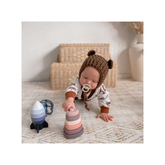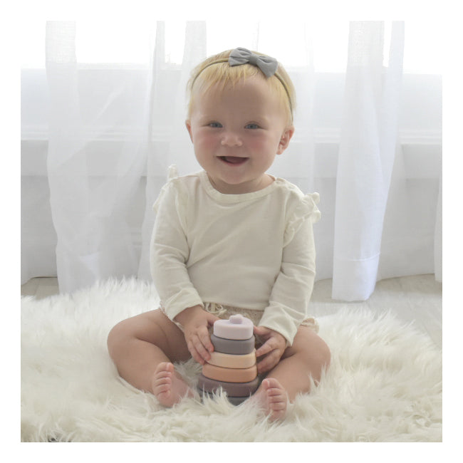 Inspire creativity and develop your baby’s fine motor skills with this fun, silicone stacker. Providing sensory stimulation for developing minds, each piece is made from BPA-free, food grade silicone making it a great teether toy too!