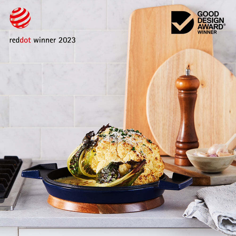 Oven-to-table made easy with our Magnetic Acacia Trivets. The integrated magnets hold the trivet to the base of the pan for hands-free serving convenience. Designed for Stanley Rogers French Oven Grill Duo and most induction compatible cookware.